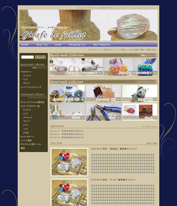 MakeShopテンプレートの為、デザインの編集や調整は不可能となりますが、上部バナーとトップページの中央画面部分のみ、オリジナルの画像やテキストを組み込むことができます。